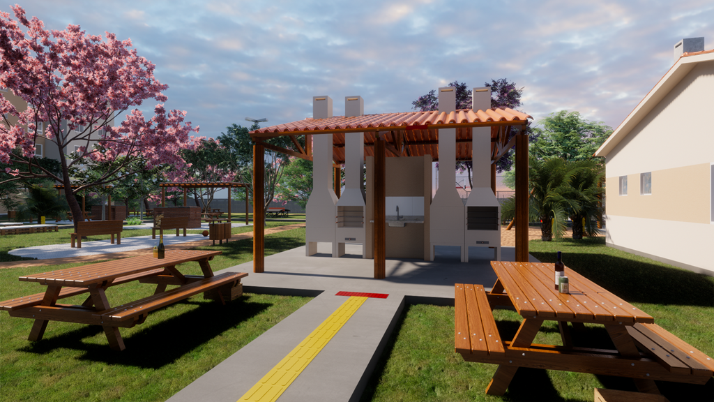Imagine ter playground para as crianças se divertirem, espaço zen para você relaxar, salão de festas para comemorações, chimarródromo para desfrutar da bebida típica gaúcha, pista de caminhada para exercícios, academia ao ar livre para manter a forma, quadra poliesportiva para praticar esportes, horta comunitária para cultivo de alimentos orgânicos, churrasqueiras ao ar livre para momentos de lazer, quiosque com churrasqueira para reunir amigos e familiares, e ainda bicicletas compartilhadas para passeios e transporte.